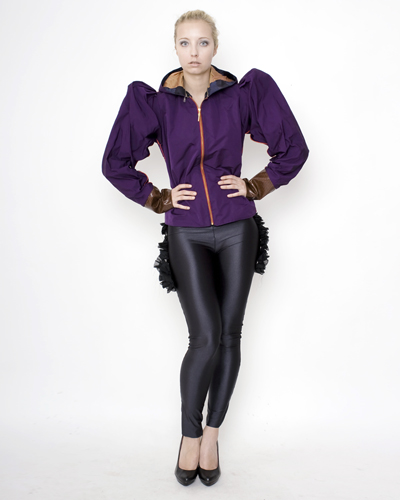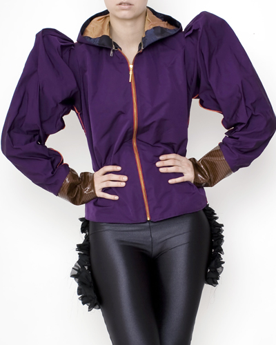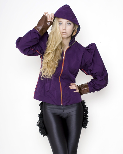 Gefütterte Jacke mit Kapuze (diese ist komplett abnehmbar), Puffärmel.